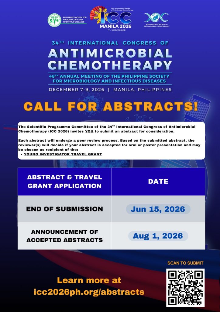The EARLY BIRD registration for the 34th International Congress of Antimicrobial Chemotherapy x 48th Annual Meeting of the Philippine Society for Microbiology and Infectious Diseases is now open!